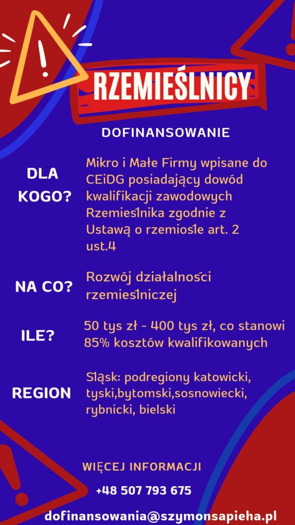 DOTACJA DLA RZEMIEŚLNIKÓW do 85% dofinansowania